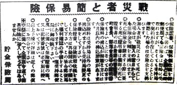 戦災にあった場合の手続きの詳細説明である。同時期に郵便貯金でも同様の説明を掲載しており、親切な対応と言える。