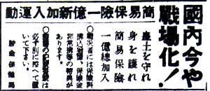 民間の保険会社も、簡易保険に負けじと生命保険の加入促進の広告を出してきた。