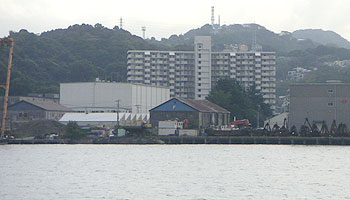 現在、海自艦船補給処と相模運輸倉庫の倉庫地帯ですが、もとは軍需部長浦地区の倉庫地帯です。田浦駅裏にあたり、兵器庫、水雷庫、電気庫、砲銃庫などが立ち並び、砲身、砲架、魚雷、機雷、発電機、通信機、探照灯、航海兵器などが格納されていました。戦争末期には空襲対策として何棟か解体されたが、現在も、多くの施設が外観は改修されているものの現役で使用されています。写真右手の大きな倉庫が第三電気庫、中央の切妻屋根の倉庫が第三水雷庫です。