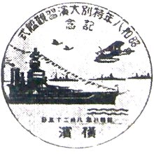 8月25日の観艦式当日に、市内郵便局で、拝観所附近では、山手または浦島の出張所で押印された。