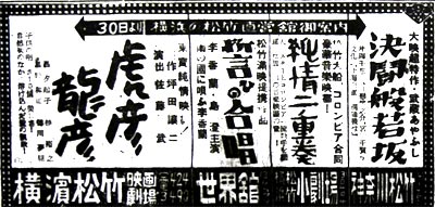 佐分利信、桑野通子、水戸光子 大久保晴子、徳大寺伸出演 横浜常設館」