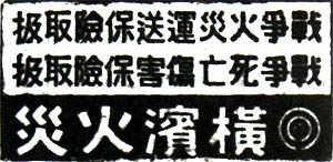横浜火災海上運送信用株式会社が正式名称で、明治30年創立、横浜に本社を置く保険会社である。現存しない会社であるが、戦争での火災や死亡・傷害の保険と言うのは今では考えられない。それともよほど保険料が高額なのか。いずれにしても、現在では保険金対象外であるが、実際支払われたのであろうか。調べてみたい。