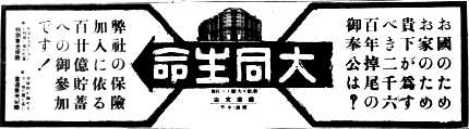 同社は、明治44年創業の徴兵保険の会社で、戦後、大和生命保険と改称されたが、消滅し、現在のプルデンシャル ジブラルタ ファイナンシャル生命保険に継承されている。徴兵といいながら、志願兵も対象となる旨アピールしている。