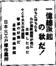日本火工による今月2回目の広告。 上の日立製作所同様、大本営発表を使った内容になっているが、それだけ連合艦隊の出撃が待ち望まれていたことがわかる。