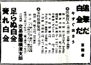 貯蓄目標をテーマにした企画連合広告広告。面白いのは二百七十億の「七」を修正しているところ。理由はお考え下さい。対象は平塚・藤沢の事業者などである。平塚高等家政女学校は、大正14年創立の家政塾が前身で、改称を繰り返したが現在の鵠沼高等学校である。