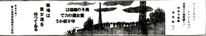日本ハマライトとは、詳しくは分からないが、昭和11年に設立された電気絶縁物であるハマライトの製造メーカーである。軍需工場の一翼を担っていたものと推測される。米英の婦人に負けるなとあるが、労働力のひっ迫感が伝わってくる。