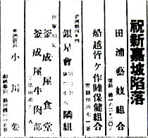 この報を受けて県内各地では11日から様々な祝賀行事が行われた。支那事変もこれで一段落かと思わせたが、戦後処理を誤り、戦闘は続き
