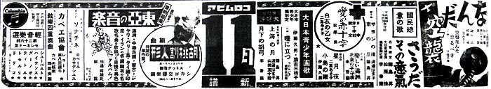 広告を一瞥するとほとんどが軍事保護院や陸海軍省、文部省、情報局などの推薦や撰定である。国策レコードオンパレード。