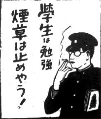 煙草の広告には、昭和14年10月から15年5月にかけて戦線に慰問品として送ろうという国策広告が掲載されていたが、15年9月からは学生に対する禁煙広告があらわれてきた。広告主の記載がないが、政府の広告なのであろうか。