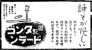 更に二日後の広告。今度は大砲の砲煙のなかに「屠れ米英我等の敵だ」を入れ込んできた。粉が飛散しないという売り文句も微妙に言い回しを変えてきており、制作者の苦心の跡が感じられる。