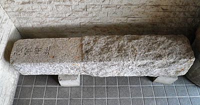 解説によると浦賀郵便局で発掘されたもので、この場所には明治23年に浦賀憲兵分遣隊が設置されていたことから、分遣隊の敷地境界標であるとされている。
