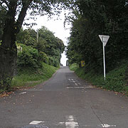 東名高速の交差から相鉄バスの水道路バス停までを紹介します。この区間は、2箇所の切通しを通過する、昔の面影が残るルートで、標石も数多く残されています。 水道路バス停を過ぎると、相模川まで平坦なルートを一直線です。 |