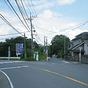| @半原向。左が水道路 | A半原向。水道坂の入口。右手の道路も含めて水道路敷地となっています。 | A逸見向。先は中津交差点 | A水道坂下り口に設置されている水道坂石碑 |