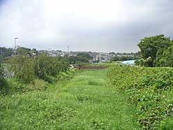 国道1号の交差から小田急江の島線交差までの区間を、中間にある国道467号交差で二つに分けて紹介します。 このあたりは平坦な台地ではなく、河川部分は低地となり、かなり起伏がある土地形状です。遺構としては、標石が国道467号の周辺に若干残っているだけです。国道1号線から境川間は、道路ではなく、水路状になっており歩くことはできません。また、小田急線交差の直前も私有地のようで、歩くことはできません。 |