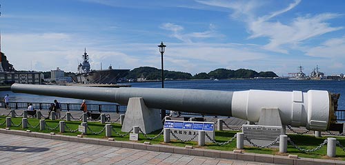 ヴェルニー公園に設置された砲身。バックは旧海軍工廠。
