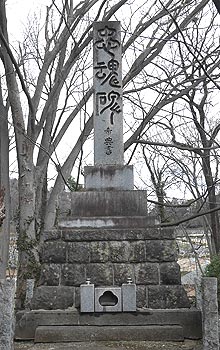 碑高250p、幅47p、厚さ38p、台石3段100p、台座130p