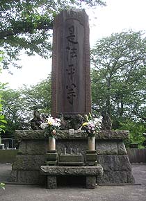 松輪の福泉寺境内に設置されている。日清戦争から大東亜戦争までの同地区の戦没者80柱を慰霊する碑。同地区の遺家族によって昭和38年8月建立。 碑高300p、幅95p、厚さ27p、台座125p 所在:福泉寺(三浦市) (刻字) 碑正面: 「是法平等」、揮毫は解読不明。 碑裏面: 「戦没者名 里名 八ケ久保 鈴木市五郎 鈴木末子 立川キヨ子 鈴木一雄 鈴木仙松 鈴木佐吉 鈴木鶴松 鈴木八蔵 柳作 立川石夫 立川一夫 立川春義 立川三郎 菱沼芳正 池田 鈴木初太郎 鈴木正一 草間松竹 藤平太一 田鳥原 鈴木千代松 鈴木義夫 鈴木武一 鈴木庄太郎 梨豊 梨キク 梨和夫 山田敏治 谷戸 鈴木秀雄 梨甚七 鈴木熊吉 市田惠子 鈴木ツネ 藤平梅吉 鈴木高治 藤平勇 坪井 鈴木鶴吉 鈴木チエ子 高梨昇 井上為治 藤平卯之助 梨市夫 棒作 癘幹雄 杉野三郎 鈴木勇 杉野清治 藤平政治 鈴木芳馬 藤平元治 八ツ堀 長谷川常吉 草間治夫 多田摩佐雄 鈴木佐一郎 鈴木菫吉 大畠 立川栄次郎 北風義雄 鈴木春夫 鈴木栄次郎 鈴木音次 山田義夫 片岡唯尾 鈴木松雄 鈴木留吉 吉田乙吉 吉田二三夫 鈴木茂義 吉田春義 鈴木功 南向 鈴木力藏 鈴木元大 鈴木隆 間口 鈴木梅次 長谷川一雄 大川三雄 鈴木英夫 鈴木俊雄 立川肇 鈴木年雄 鈴木福松 長谷川朝治 鈴木進 房作 杉野徳太郎 八ツ堀 鈴木勝次 日清日露兩戰爭及ヒ支那事変ヨリ大東亜戰爭ニ於而戰没シタル英□ノ志ヲ弔ヒ併而其ノ功績ヲ永遠ニ記念スヘク献立セリ 昭和三十一年八月 西厂一九五六年 松輪遺家族 役員 立川勇 鈴木留藏 鈴木庄太郎 世話人 鈴木八藏 立川富藏 鈴木鉄五郎 梨徳五郎 杉野八藏 藤平徳藏 杉野ツル 世話人 鈴木助左衛門 北風孫治朗 草間留藏 鈴木金吾 石工 吉田春治 立川勇 謹書」 |