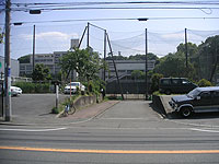 高校と車道の間の駐車場