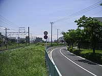 F軌道敷は、道路沿いを走る。