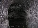 上記写真に写っている3つの格納庫の様子。大きさはものによって違うが大体、間口約3m、高さ約2.5m、奥行き約30mである。 一部、漁具やゴミが溜まっているが、当時のままの形状である。