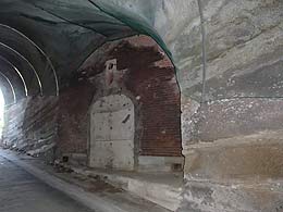 砲側庫はフランドル積みレンガ造でカマボコ型のヴォールト天井や漆喰などもきれいに残っている。