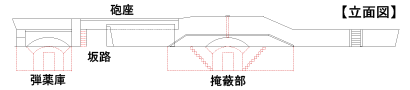 観音崎砲台背後の陸正面防御用の砲台である。周囲を土塁で囲まれたほぼ矩形で、独立して戦えるようになっている。背後にある入口は鍵の手に折れて直接の進入を防いでいる。