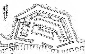 花立堡塁砲台とともに、日本初の西洋式堡塁。フランス留学から戻った陸軍工兵の父と呼ばれた上原勇作工兵大尉(後元帥)が手がけたフランス式堡塁である。