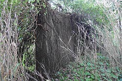 4つのコンクリート製の砲座(首線東)が一直線に並び、各砲座間に横墻があった。背後の山頂に観測所があり、砲座の左前方に探照灯庫があったとされる。