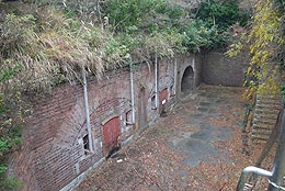 砲台入口の隧道。隣は灯台へ上る階段